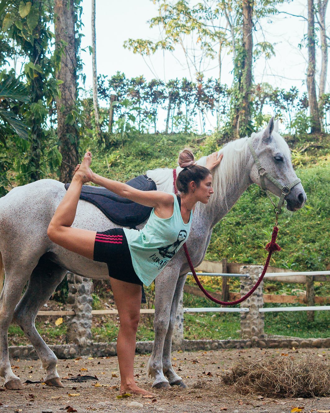 After quitting her draining job in advertising, she completed her first yoga teacher training in India and embarked on a self discovery journey through Latin America. In Costa Rica she found a way to merge her two passions: yoga and horses. She attended an equine yoga teacher program that showed her the healing power of true connection. She then became a certified Horse Guided Empowerment®️ facilitator.